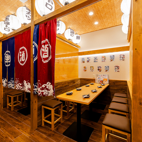 8名様までご利用いただけるテーブル個室は、仲間内での宴会や会社の集まり、ご家族でのお食事に最適です。扉付きのプライベート空間なので、周囲を気にせず会話を楽しめるのも魅力。ゆったりと座れるテーブル席で、旬の料理とお酒を囲みながら、にぎやかなひとときをお過ごしください。