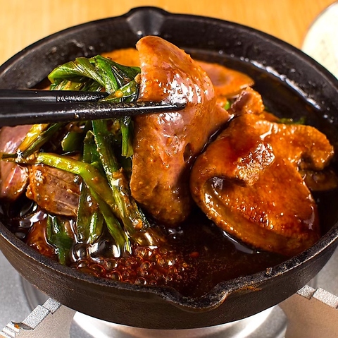 レバニラといえば、炒められて出てくるイメージありませんか?当店の伝説のレバニラは”焼き立て”をお召し上がり頂き、他とは一味違う。新鮮なレバーとニラを甘辛い特製のタレをたっぷりかけて、お客様自身で焼いて頂き"焼き立て"を"その場で"お召し上がり頂けます。