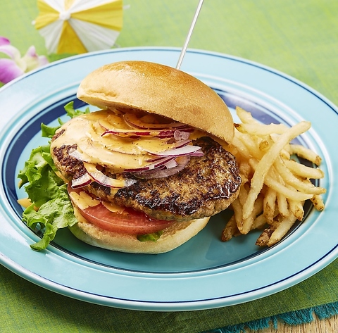 大満足間違いなし! お肉と野菜のコンビネーション抜群のバーガーです。