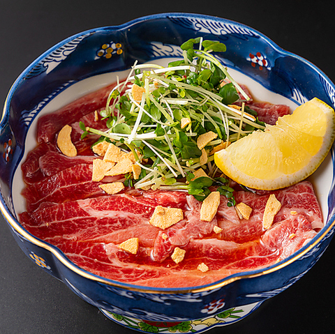 - ※焼き物は1人前1皿2切れでご用意いたします。(1)一般的に食肉の生食は食中毒を引き起こすリスクがございます。(2)お子様、ご高齢者など、食中毒に対する抵抗力の弱い方は、食肉の生食の摂取をお控えください。