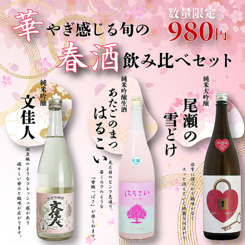 店主が厳選した旬の日本酒が飲み比べできるセットが出来ました!今の時期だけですので是非ご賞味ください。