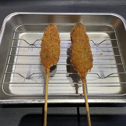 当店の魅力は海鮮だけじゃないんです。実はアツアツ&サクサクの「串揚げ」も大人気!宴会コースにも含まれる人気のメニューで、ビールやハイボールとの相性もバツグンです。ほかにも絶品唐揚げなど定番の居酒屋メニューが盛りだくさん。お酒が進む一品料理から、シメのご飯ものまで揃っています。