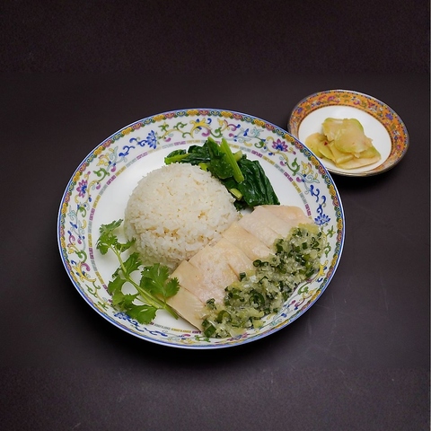 柔らかく火を通した鶏肉に、鶏の旨味をたっぷり含んだスープで炊き上げたジャスミンライス。葱と生姜で作った香り高い特製ソースとともにお召し上がりください。