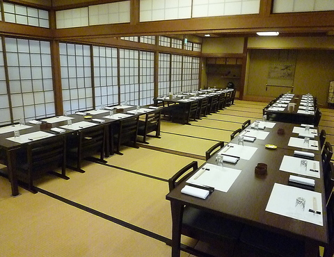 | 個室 | 30名様×1 | 『高松の間』 三十八畳の大広間、板張りの舞台が付属しています。ステージイベント等にもお使いいただけるお部屋です。 |