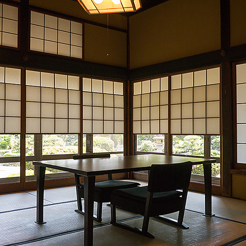 | 個室 | 8名様×1 | 『佳友の間』 明治期築、八畳のお部屋です。二面の障子の向こうには風情あふれる庭園が広がっています。 |