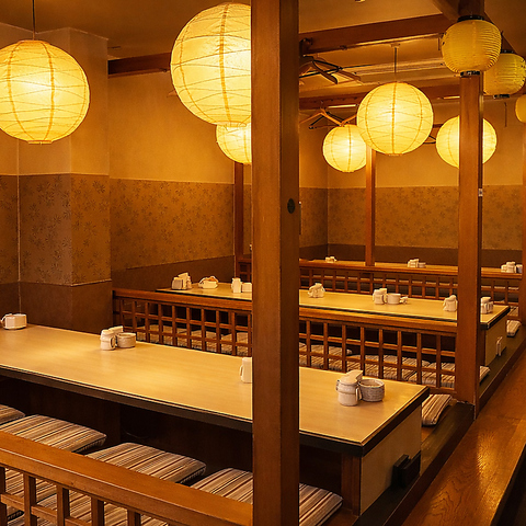エリア最大級の空間!個室で九州料理を満喫可能。落ち着いた空間で美味しいお酒と料理をゆったりと。