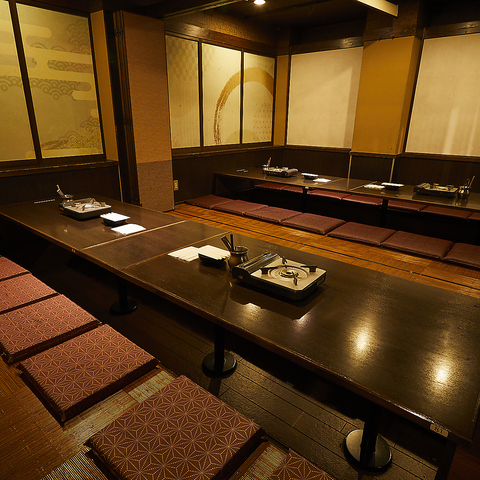 通路や店内の装飾まで雰囲気にはこだわっております!少人数様から最大50名様収容の掘り炬燵席まで様々なお部屋をご用意!誕生日会や接待など様々な飲み会に対応!飲み放題付コースは3,000円台からご用意しております。8名様以上で1名様無料の特典もございます♪新横浜駅より徒歩約6分の隠れ家居酒屋です♪