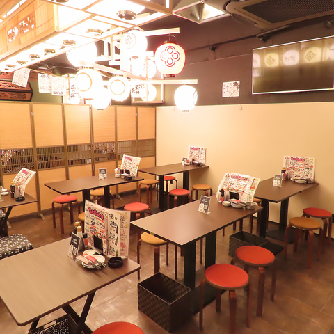 大きな提灯と赤い和傘が彩る店内は、活気に満ちた大衆居酒屋ならではの賑やかな雰囲気です。少人数からグループまで、人数に合わせて利用しやすいテーブル席を豊富にご用意しております。新鮮な魚介と自慢のおでん、厳選酒で、仲間との楽しい時間をお過ごしください。