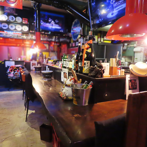 重厚な木が美しいカウンターは、臨場感あふれる特等席です。お一人様やカップルに最適。豊富なドリンクを眺めながら、自分だけのペースで極上焼肉を堪能できます。