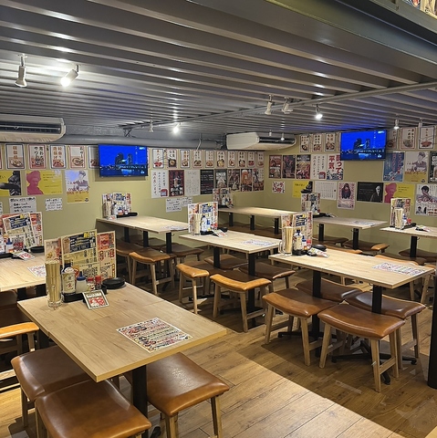 店内には提灯やレトロなポスターやくすっと笑えるポスターなど明るい雰囲気の居酒屋をイメージした店内でお料理やお酒をお楽しみいただけます♪