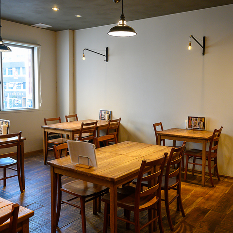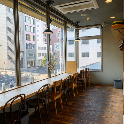 外の景色を眺めながら、自分だけの時間をゆったりと過ごせる特等席です。お仕事の合間のリフレッシュランチや、夕暮れ時の一杯に最適。開放的な窓から差し込む光を感じながら、焼きたての和牛バーガーを頬張る贅沢なひとときを。お一人様でも気兼ねなく、喧騒を忘れてリラックスしていただけます。