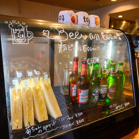 菊ちゃんの卵サンドや世界のビールも大人気!充実のラインナップでお待ちしております。
