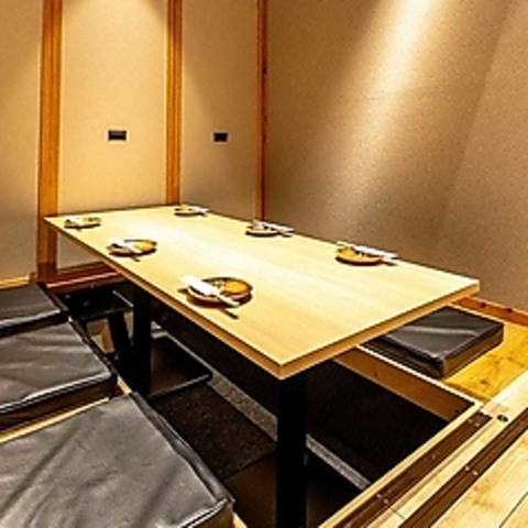 【4~6名様完全個室(掘りごたつ)】 《禁煙》 おしゃれなお席は女性やカップルにお喜び頂けます。静かで落ち着いた空間はデートや女子会にもぴったり。大人の雰囲気をごゆっくりお楽しみ頂けます。
