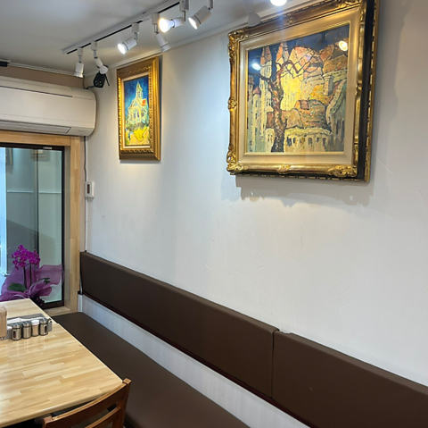 【◆異国の美に包まれる店内空間◆】店内には世界中から集めた絵画や伝統小物を飾り、中東の風景を閉じ込めたような雰囲気が広がります。色彩や装飾が醸す重厚な世界観は、まるで旅先の異国を訪れたよう。食事だけでなく空間ごと楽しみたい方にぴったりの非日常空間です。
