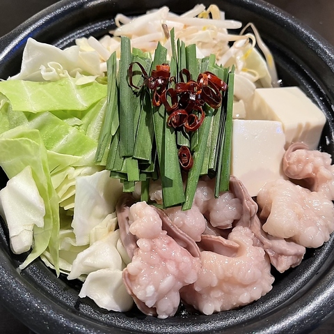 1人前からOK!しっかりと処理された和牛ホルモンを使用した《塩モツ鍋》!プリプリの食感と上質な脂ののったホルモンに、絶妙な塩味がベストマッチ♪鍋を楽しんだ後には〆のラーメンを楽しむのもおススメです◎麺を追加することも可能ですので、美味しい塩モツ鍋を是非ご堪能下さい☆美味しいお酒との相性もばっちりです★