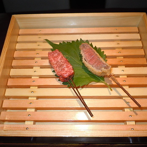 厳選された素材を使用し、それぞれの特性を最大限に引き出すための調理法を採用しています。素材の旨味を引き出すための細やかな配慮し、一口ごとに満足感を感じること間違いなし。そんな上質な素材の味を最大限に引き出した串揚げは、まさに極上の味。ミシュランを獲った北新地のクオリティを、梅田にてリーズナブルにご堪能ください。