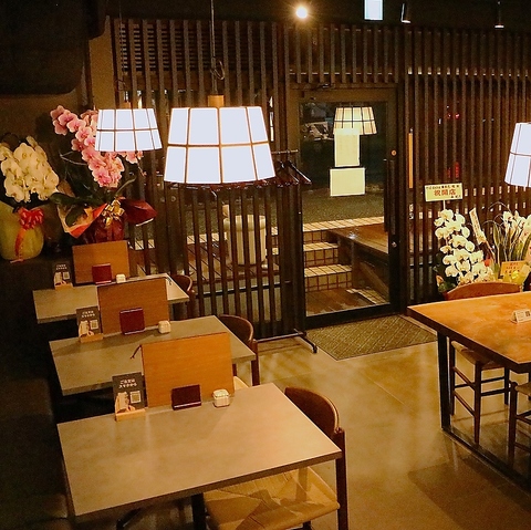 落ち着いた色合いの壁と柔らかな灯りに包まれたテーブル席は、居心地のよいくつろぎ空間。ゆったり配置された椅子と広めのテーブルで、食事も会話も心ゆくまで楽しめます。ご家族やご友人とのお食事はもちろん、少人数の宴席にもぴったりです。