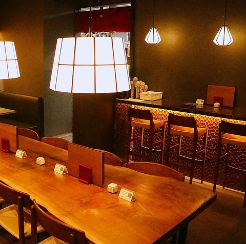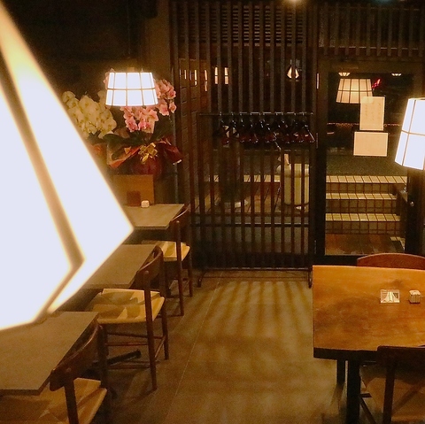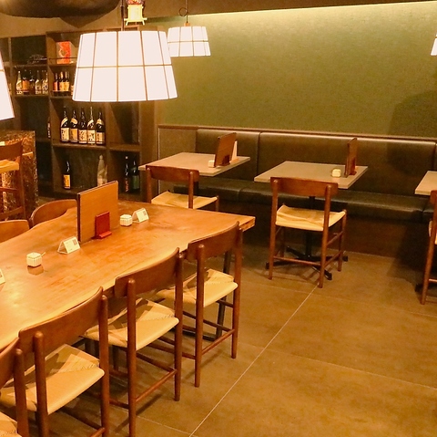 落ち着いた色調でまとめられた店内は、柔らかな灯りが心地よく、ゆったり過ごせる雰囲気に満ちています。ゆとりあるボックス席は仲間との会話も弾み、木の温かみあるテーブルはひとり時間にも最適。蕎麦とお酒をじっくり楽しめる大人の空間です。