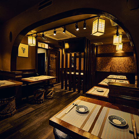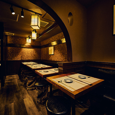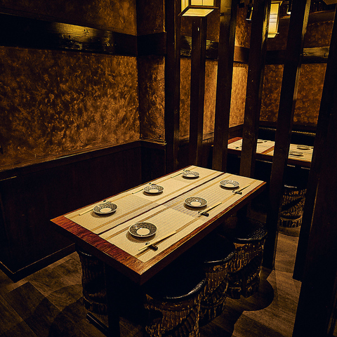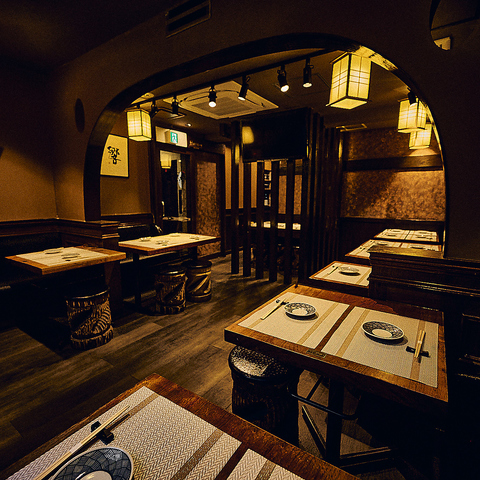 【リピーター率80%!!】情緒漂うこだわりの個室でまったりと♪間接照明とこだわりの内装でおもてなし◎周囲を気にすることのない完全プライベート空間でゆったりとお召し上がりください。様々なタイプの個室をご用意しており何度ご来店いただいてもお楽しみいただけます♪大切な時間を大切な人たちと当店自慢の個室で♪
