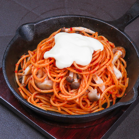 旨みたっぷりの牛だしをじっくり煮込み、深いコクを引き出した特製スープに、香り高い韓国唐辛子の辛さを絶妙に合わせて、パスタと最後にとろとろチーズをのせた福岡ではここだけの1品!