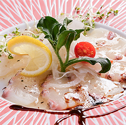 鯛の皮に切り込みを入れ熱湯で霜降りにしてあります。皮の旨味と食感が楽しめます♪
