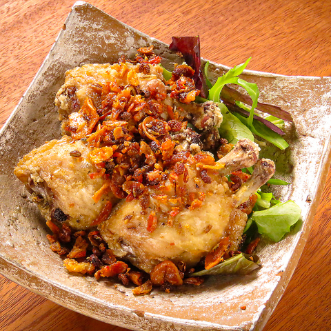 カリッと揚げた手羽元に香り豊かなスパイスをたっぷりまとわせたスパイスチューリップ。噛むほどにジューシーな肉汁と刺激的な風味が広がり、やみつきになる美味しさ。お酒との相性も抜群で、手が止まらない人気の一品です。