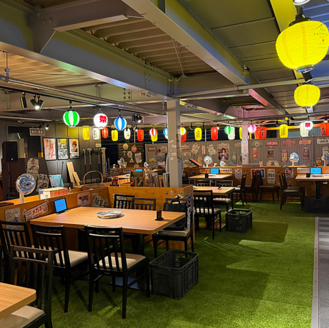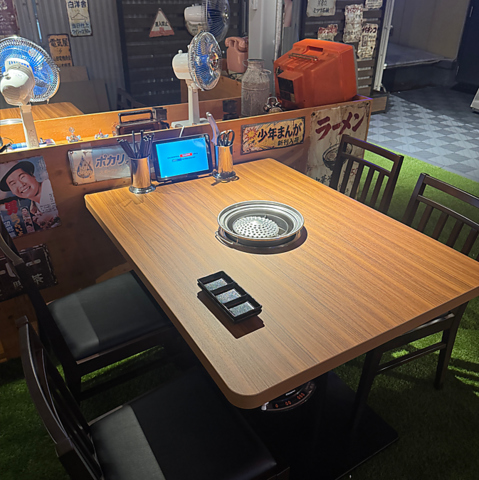 昭和レトロな提灯が灯る、屋上焼肉酒場空間で、気取らず楽しいひとときを♪ にぎやかな宴会にもぴったり♪ 店内には、昭和の名作漫画、映画のパンフレット、レコードなどで溢れています♪全てのグッズをお客様がご自由にお手に取っていただけますので、"あの頃"を思い返し、会話も弾むひとときをお過ごしください♪