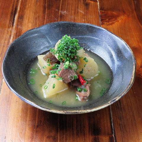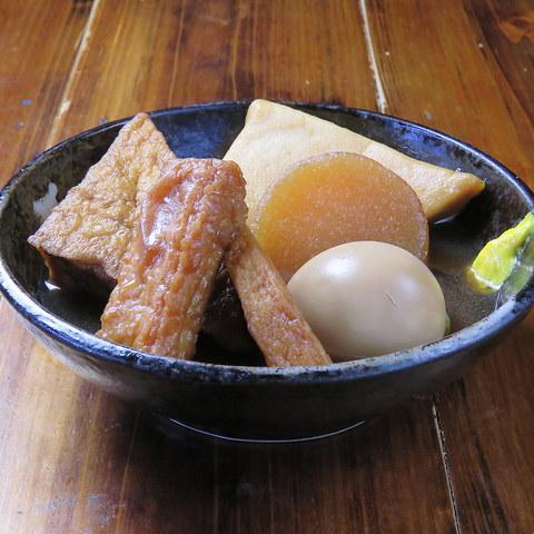 一から丁寧に出汁を取り、継ぎ足し続けたおでん出汁で炊き上げた大根は、しっかりと旨みが染み込んでおり、一口食べれば思わず笑顔がこぼれます◎お酒との相性も抜群!じっくり煮込まれたその味わいは、心も体も温まる至福のひと品。お通しとしてご提供するおでんをぜひご賞味ください!