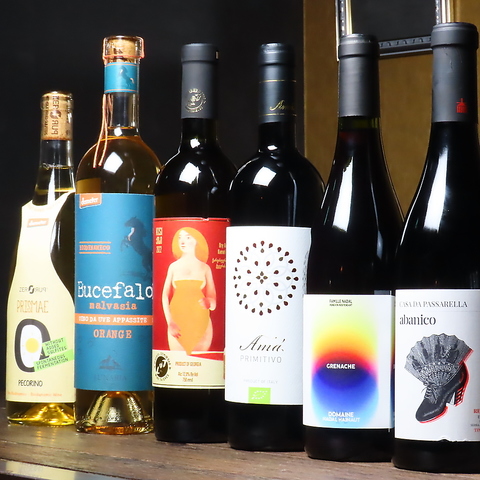 当店は常に30種類以上の種類豊富なナチュラルワインを置いております★鉄板料理の赤身ステーキやヒレステーキなどお肉料理のお食事にとても合いますので、当店のおすすめとなっております★その他の創作料理や2軒目のご利用でもお愉しみいただけるものとなっております★