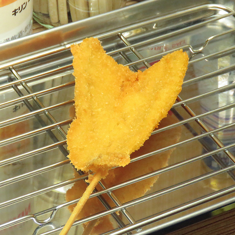 揚げたて熱々の串カツを気軽に楽しめるのが魅力です。定番から旬の食材まで種類も豊富で、何本でもついつい頼みたくなる一品。立ち飲みでサクッと味わうも良し、2階の座敷席で座ってゆったり楽しむも良し。串カツと一緒に旬の牡蠣も味わえる、ここだけの贅沢体験です。