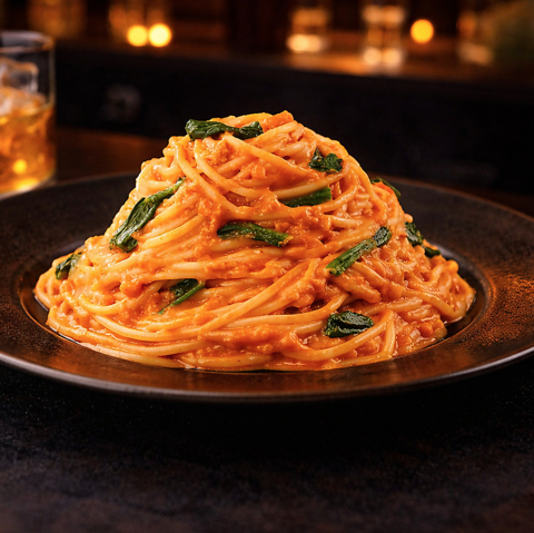 濃厚なトマトクリームにかにの旨みをしっかりと閉じ込めた贅沢な一皿。クリーミーでコクのあるソースがパスタにしっかり絡み、お酒との相性も抜群です。軽く食べたい方からしっかり食事を楽しみたい方まで満足いただける人気メニューです。