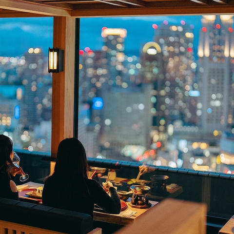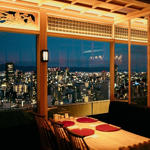 【地上100mから眺める絶景は、ムードも抜群♪】当店では、大阪の美しい夜景を様々な席からお楽しみいただけます。極限までこだわり抜いた当店自慢の絶品料理と全国各地から厳選した様々なお酒を一緒に味わいながら、贅沢なひとときをお過ごしください。夜景とともに、特別な時間をお楽しみいただけること間違いなしです♪