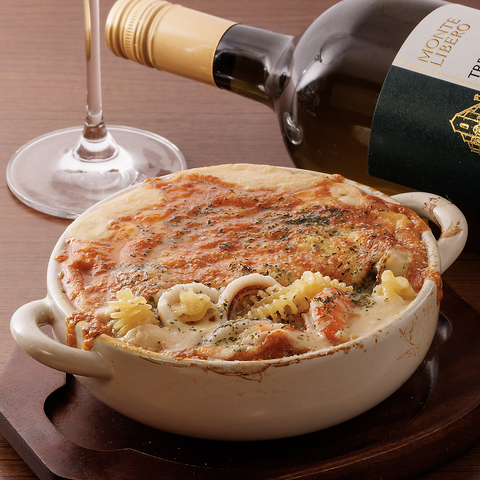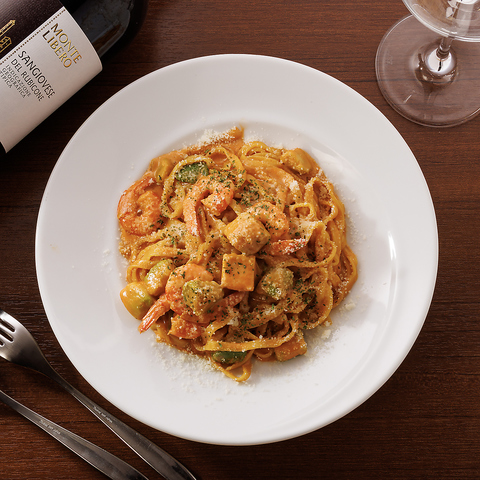 海老・イカ・ホタテの旨みを閉じ込めた熱々のシーフードグラタンや、濃厚な海老出汁が香るアメリケーヌパスタは、思わず笑顔になる一皿◎ディナー限定のあさりたっぷりアクアパッツァは、凝縮された出汁が広がる贅沢な味わい♪落ち着いた空間で、魚介の美味しさをゆっくり楽しめます。