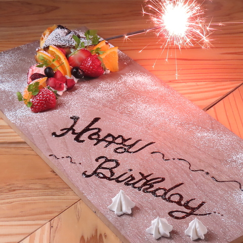 誕生日や記念日にぴったりの特製デザートプレートを承ります。メッセージやお名前を添えて、大切な方へサプライズ演出もお手伝い。落ち着いた空間で過ごす特別なひとときを、心に残る思い出に。ご予約時にお気軽にご相談ください。