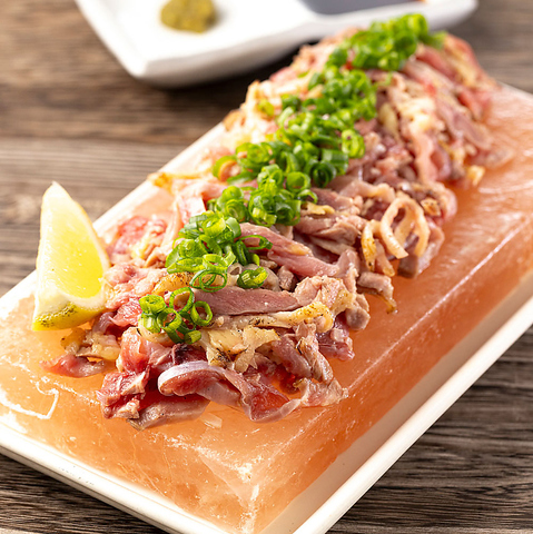 親鶏もも肉の炙り刺し 岩塩盛り
