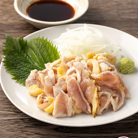 奥州美鶏むね肉の炙り刺し ~わさび醤油で~