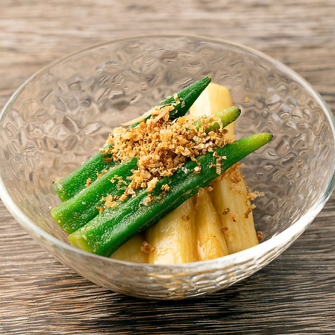 長いもとオクラのわさび醤油漬け