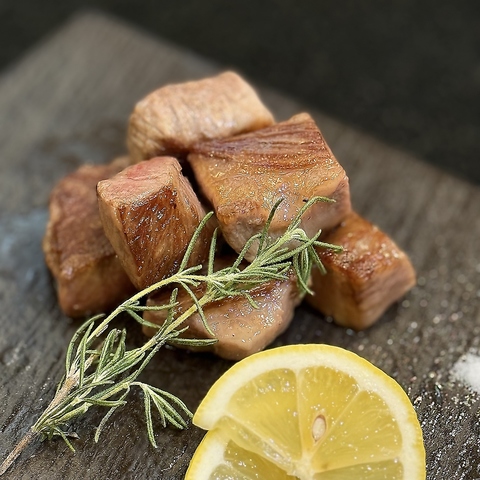 噛むほどに溢れ出す肉汁と濃厚な味わいが自慢の一品。高温の鉄板で表面を素早く焼き固めることで、素材本来の良さを内側に閉じ込めました。おすすめのお肉を使用したサイコロステーキを、ぜひご賞味ください。