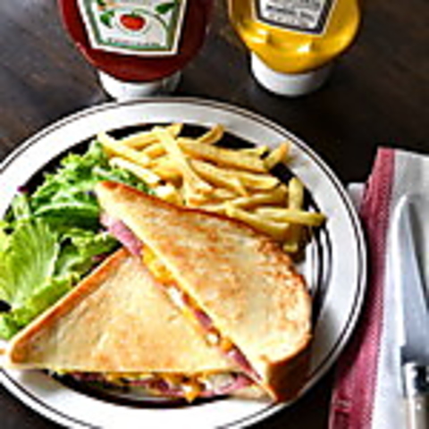 ビーフパストラミ (燻製)、キャベツソテー、チェダーチーズをはさみ、バターを塗ってフライパンで焼き、オーブンで仕上げたひと手間かけた人気のサンドウィッチ!!