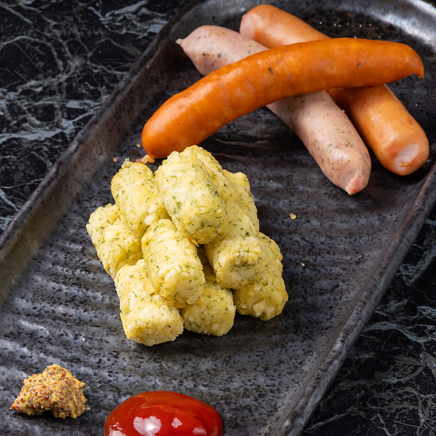 外はカリッと、中はホクホクに仕上げた黄金色のポテトと、ジューシーな肉汁が溢れ出すソーセージを贅沢に盛り付けました。シンプルながらも飽きのこない美味しさは、お酒のお供やシェアメニューに欠かせない不動の主役。スパイスの香りが食欲をそそる、満足感たっぷりのボリュームでお届けします。
