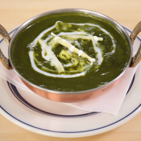 インドチーズのバター風味のピリ辛カレー/インドチーズのマイルドなほうれん草カレー/インドチーズと野菜の入った少し濃厚なカレー