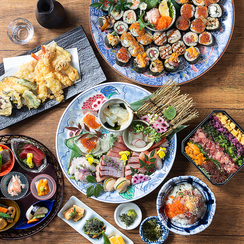 鮮度抜群のお造り盛り合わせから、天ぷら、色鮮やかなちらし寿司まで。当店自慢の会席コースです