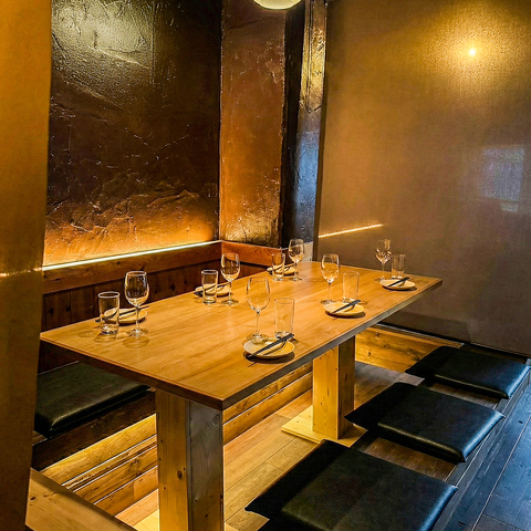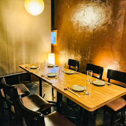 団体利用に対応できる広めの席を備えており、会社宴会や仲間内の集まりにも安心。テーブル配置の調整も可能で、人数に合わせて柔軟にご案内できます。落ち着いた木の空間で料理を囲めば、自然と一体感のある時間に。宴会コースと合わせての利用も好評です。