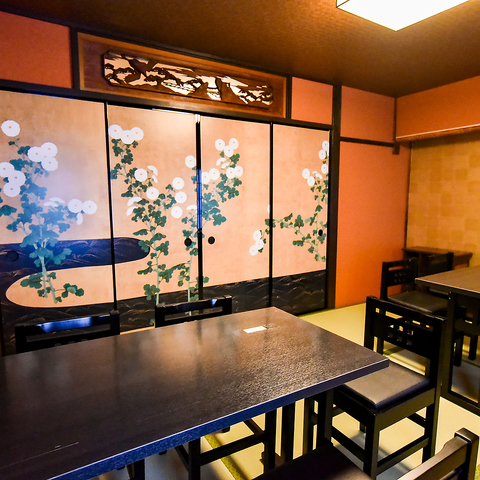 落ち着いた和の空間で、ゆったりとしたひとときを。少人数から宴会まで幅広くご利用いただけます。