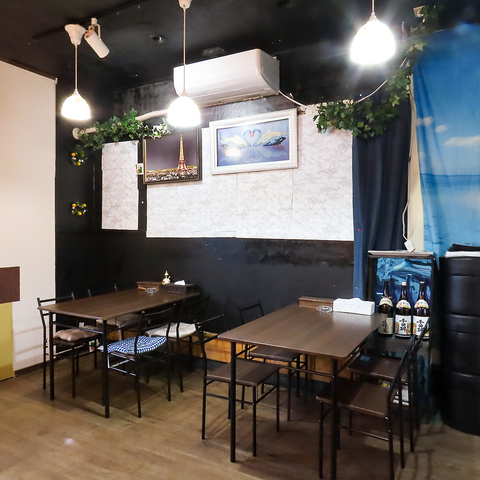 テーブル席中心の開放的な店内は、会話が弾む心地よい距離感。韓国ポップが流れるカジュアルな空間で、仕事帰りの一杯や仲間との集まりにぴったりです。気取らず過ごせる居心地の良さが魅力。