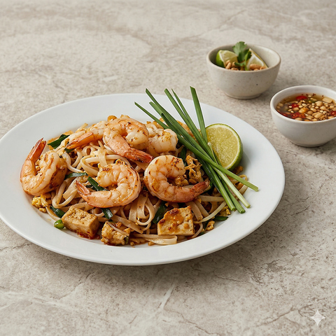 もちもちの米粉麺にプリプリのエビ、甘辛いソースの香りが食欲を刺激する「パッタイセット」はいかがですか?セットには、口直しにぴったりのスープと、シャキシャキ食感の生春巻きが2個もついてきます。レモンをキュッと絞って、さっぱりとした後味に。このボリュームと美味しさで、なんと790円!タイの屋台にトリップしたような気分を味わえます。ぜひご賞味ください。