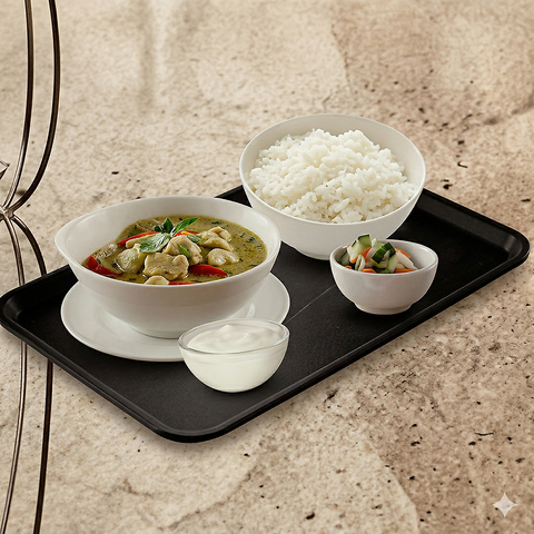 ココナッツミルクのまろやかなコクと、爽やかなスパイスが奏でる「本格グリーンカレーセット」。一口食べれば、青唐辛子の刺激とハーブの香りが広がり、一瞬で本場タイの気分に!ゴロゴロと入った柔らかなチキンと彩り野菜で、食べ応えも抜群です。お口直しのデザートも付いた、欲張りなあなたにぴったりの一皿。一度食べればクセになる、辛さと旨味の完璧なハーモニーをぜひご堪能ください。