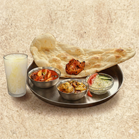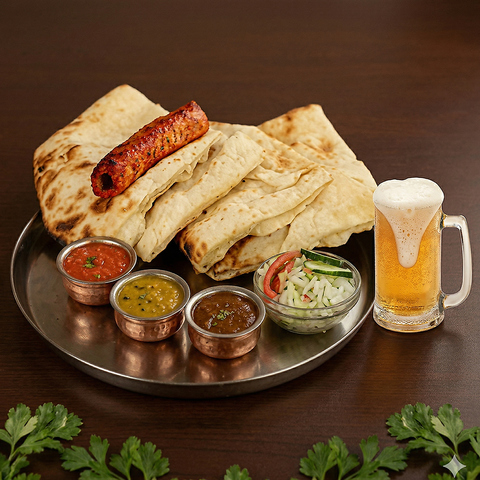 3種のカレーに香ばしいタンドリー料理、さらにはチーズナンも選べる究極の欲張りセット!冷えたビールと一緒に、スパイシーな至福のひとときを過ごしませんか?ボリューム満点の肉料理と本格カレーの連鎖は、一度食べたら止まらない美味しさ。今日のご褒美は、本場の味を詰め込んだこの一皿で決まりです!