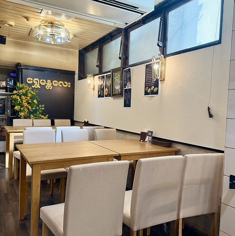 広々として清潔感のあるテーブル席をご用意しております!人数に合わせてお席のレイアウトも変更できるので、大人数でのお集まりにも柔軟に対応可能です◎普段とはちょっと違うエスニックな雰囲気での女子会や、ママ友との主婦会にも大人気♪美味しいミャンマー料理をシェアしながら、楽しいおしゃべりが弾みます!