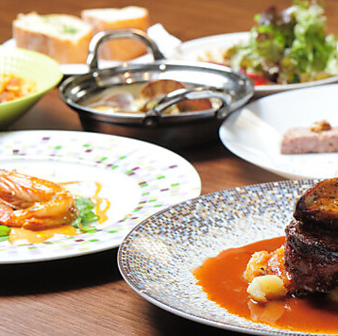 セルフサービスで供する当店では、フォアグラを乗せた牛フィレステーキなどの逸品をお手頃価格で楽しめます!選りすぐりのフランスワインやお得な飲み放題付きコースもございますので、各種宴会にもおすすめ◎ご予約にてメッセージプレートのご用意も承ります。お子様連れやペットの同伴も大歓迎!普段使いにもぜひご利用ください。